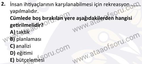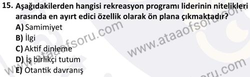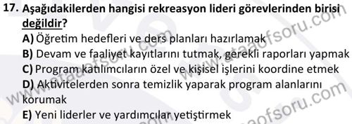 Rekreasyonda Program Geliştirme ve Planlama Dersi 2025-2026 Güz Dönemi Final Sınavı Çıkmış Sınav Soruları ve Çözümleri