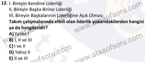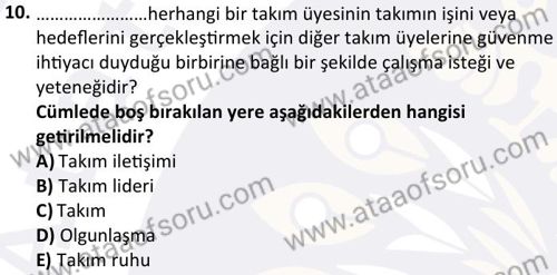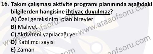 Rekreasyonda Takım Bütünlüğü Uygulamaları Dersi 2024-2025 Bahar Dönemi Bütünleme Sınavı Çıkmış Sınav Soruları ve Çözümleri