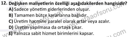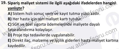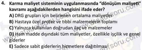Sağlık Kurumlarında Maliyet Yönetimi Dersi 2025-2026 Güz Dönemi Ara Sınavı Çıkmış Sınav Soruları ve Çözümleri