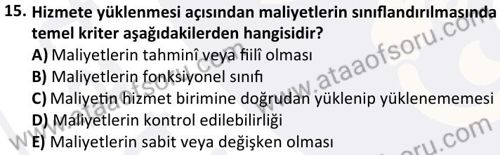 Sağlık Kurumlarında Maliyet Yönetimi Dersi 2025-2026 Güz Dönemi Final Sınavı Çıkmış Sınav Soruları ve Çözümleri