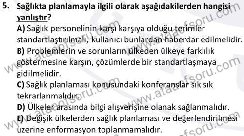 Sağlık Planlaması Dersi 2025-2026 Güz Dönemi Ara Sınavı Çıkmış Sınav Soruları ve Çözümleri