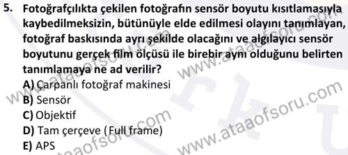 Sayısal Fotoğraf Dersi 2024-2025 Güz Dönemi Bütünleme Sınavı Çıkmış Sınav Soruları ve Çözümleri