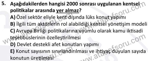 Şehircilik Dersi 2024-2025 Güz Dönemi Bütünleme Sınavı Çıkmış Sınav Soruları ve Çözümleri