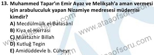 Selçuklu Tarihi ve Kurumları Dersi 2024-2025 Güz Dönemi Bütünleme Sınavı Çıkmış Sınav Soruları ve Çözümleri