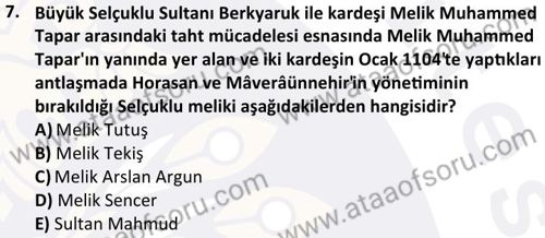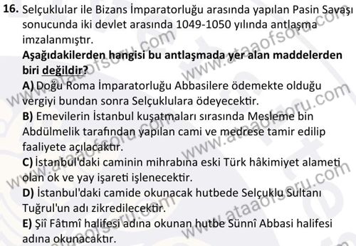 Selçuklu Tarihi ve Kurumları Dersi 2025-2026 Güz Dönemi Ara Sınavı Çıkmış Sınav Soruları ve Çözümleri