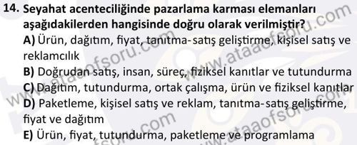 Seyahat Acentacılığı ve Tur Operatörlüğü Dersi 2024-2025 Bahar Dönemi Final Sınavı Çıkmış Sınav Soruları ve Çözümleri