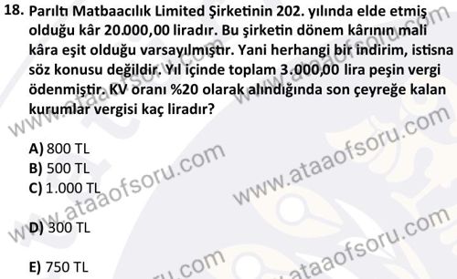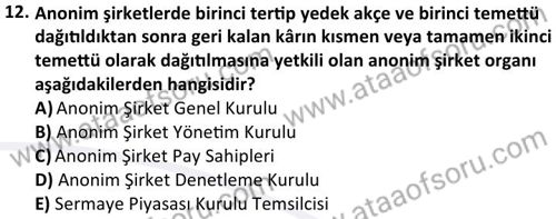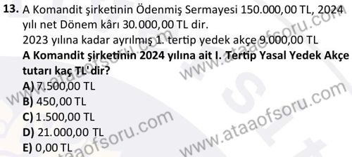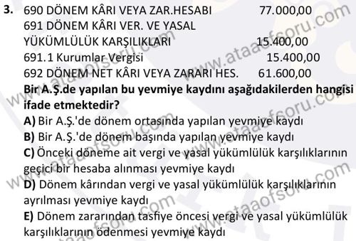 Şirketler Muhasebesi Dersi 2024-2025 Bahar Dönemi Final Sınavı Çıkmış Sınav Soruları ve Çözümleri
