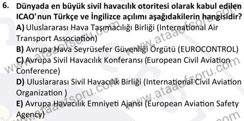 Sivil Havacılığa Giriş Dersi 2024-2025 Güz Dönemi Final Sınavı Çıkmış Sınav Soruları ve Çözümleri