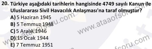 Sivil Havacılığa Giriş Dersi 2025-2026 Güz Dönemi Final Sınavı Çıkmış Sınav Soruları ve Çözümleri