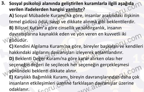 Sosyal Psikoloji Dersi 2025-2026 Güz Dönemi Ara Sınavı Çıkmış Sınav Soruları ve Çözümleri