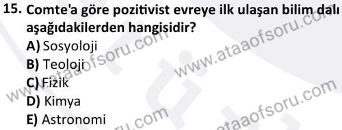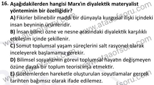 Sosyoloji Tarihi Dersi 2024-2025 Bahar Dönemi Bütünleme Sınavı Çıkmış Sınav Soruları ve Çözümleri