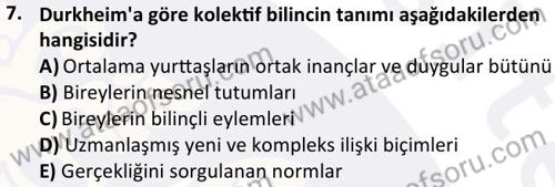 Sosyoloji Tarihi Dersi 2024-2025 Bahar Dönemi Final Sınavı Çıkmış Sınav Soruları ve Çözümleri