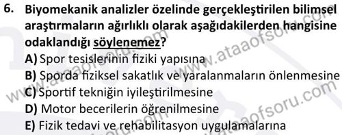 Spor Biyomekaniği Dersi 2025-2026 Güz Dönemi Final Sınavı Çıkmış Sınav Soruları ve Çözümleri