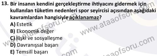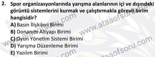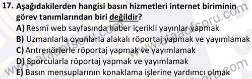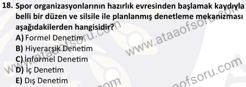 Spor Organizasyonları Yönetimi Dersi Final Deneme Sınavı (27 Nisan)