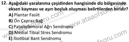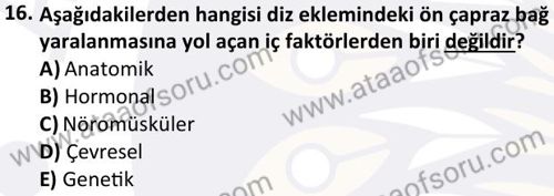 Spor Sakatlıklarından Korunma ve Rehabilitasyon Dersi 2023-2024 Bahar Dönemi Bütünleme Sınavı Çıkmış Sınav Soruları ve Çözümleri
