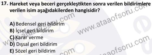 Sporda Beceri Öğrenimi Dersi 2024-2025 Güz Dönemi Bütünleme Sınavı Çıkmış Sınav Soruları ve Çözümleri
