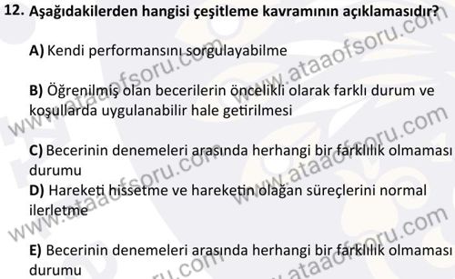 Sporda Beceri Öğrenimi Dersi 2025-2026 Güz Dönemi Ara Sınavı Çıkmış Sınav Soruları ve Çözümleri