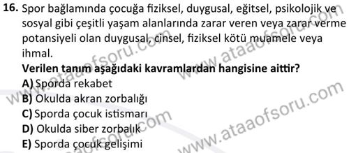 Sporda Çocuk Koruma Dersi 2023-2024 Bahar Dönemi Bütünleme Sınavı Çıkmış Sınav Soruları ve Çözümleri