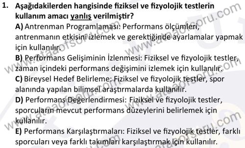 Sporda Fizyolojik Testler Dersi 2024-2025 Güz Dönemi Bütünleme Sınavı Çıkmış Sınav Soruları ve Çözümleri