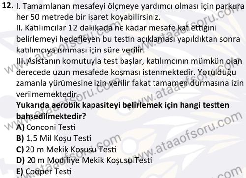 Sporda Fizyolojik Testler Dersi Ara Deneme Sınavı (19 Kasım)