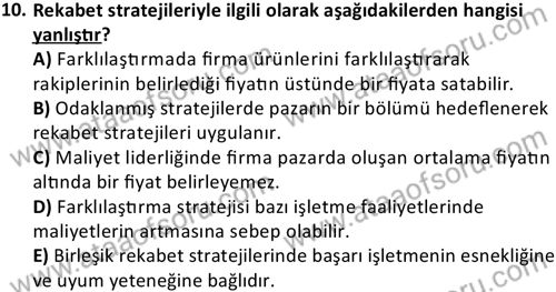 Stratejik Yönetim Dersi 2018-2019 Bahar Dönemi Bütünleme Sınavı Çıkmış Sınav Soruları ve Çözümleri