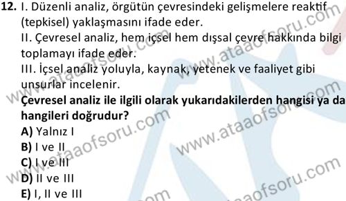 Stratejik Yönetim Dersi 2018-2019 Mezuniyet Üç Ders Sınavı Çıkmış Sınav Soruları ve Çözümleri