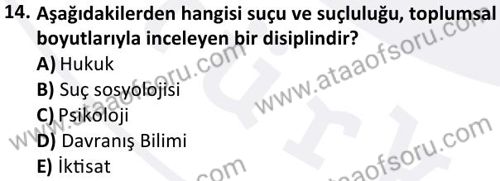 Suç Sosyolojisi Dersi 2024-2025 Güz Dönemi Bütünleme Sınavı Çıkmış Sınav Soruları ve Çözümleri