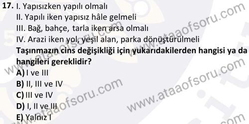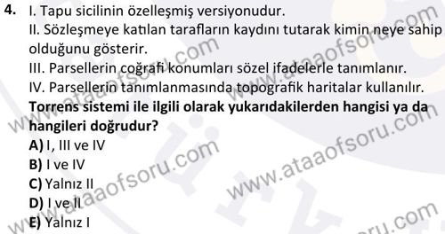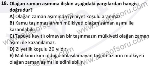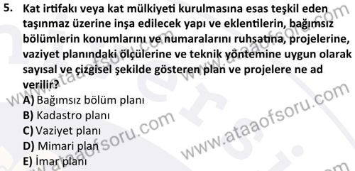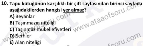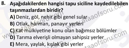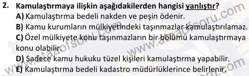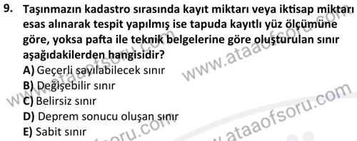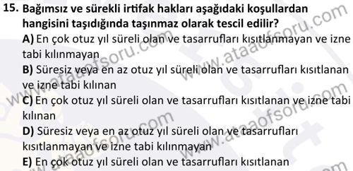 Tapu ve Kadastro Bilgisi Dersi 2024-2025 Bahar Dönemi Bütünleme Sınavı Çıkmış Sınav Soruları ve Çözümleri