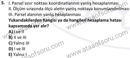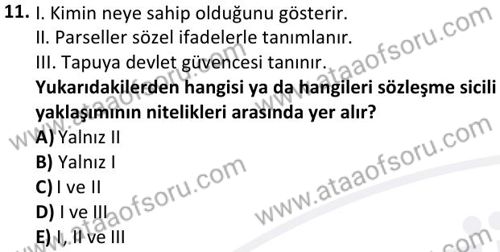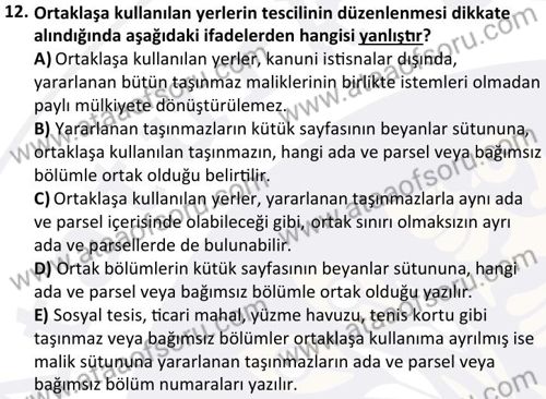 Tapu ve Kadastro Bilgisi Dersi 2024-2025 Bahar Dönemi Final Sınavı Çıkmış Sınav Soruları ve Özetleri. Geçmiş dönemlere ait sınav sorularını çözerek sınavlarda gelebilecek soru kalıplarının ve benzer soruları yakalamanız daha kolay olacaktır. Çıkmış sınav soruları ile beraber konu anlatımı, ders özetleri ve online deneme sınavları ile sınavlara hazrılanabilirsin.