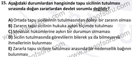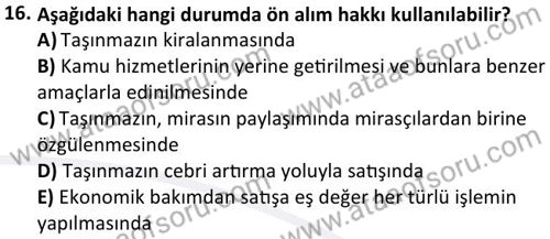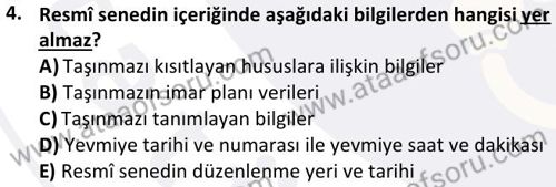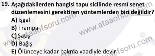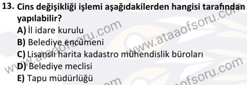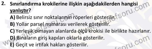 Tapu ve Kadastro Bilgisi Dersi 2024-2025 Bahar Dönemi Final Sınavı Çıkmış Sınav Soruları ve Çözümleri