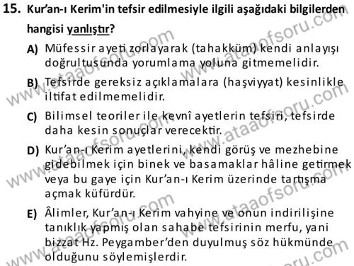 Tefsir Dersi 2024-2025 Güz Dönemi Bütünleme Sınavı Çıkmış Sınav Soruları ve Çözümleri