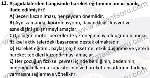 Temel Hareket Eğitimi Dersi 2025-2026 Güz Dönemi Ara Sınavı Çıkmış Sınav Soruları ve Çözümleri