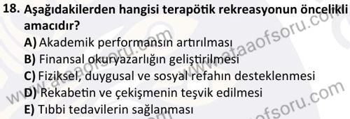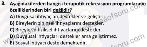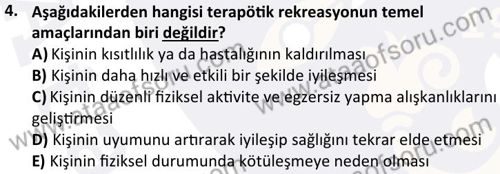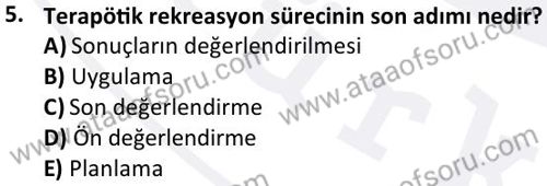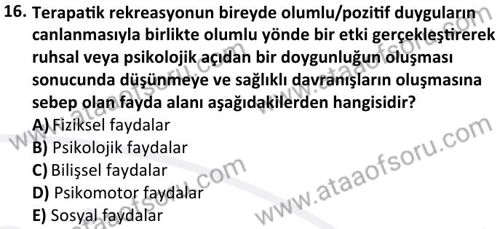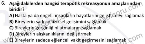 Terapötik Rekreasyon Dersi 2023-2024 Güz Dönemi Bütünleme Sınavı Çıkmış Sınav Soruları ve Çözümleri