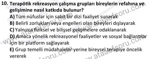 Terapötik Rekreasyon Dersi 2023-2024 Güz Dönemi Final Sınavı Çıkmış Sınav Soruları ve Çözümleri