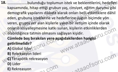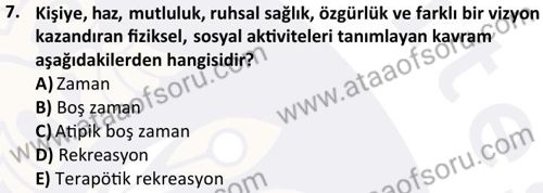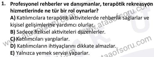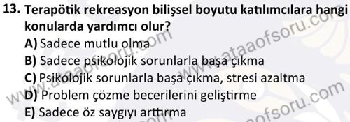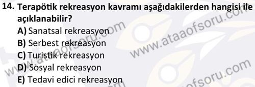 Terapötik Rekreasyon Dersi 2023-2024 Mezuniyet Üç Ders Sınavı Çıkmış Sınav Soruları ve Çözümleri