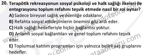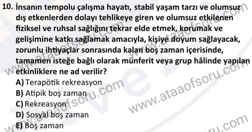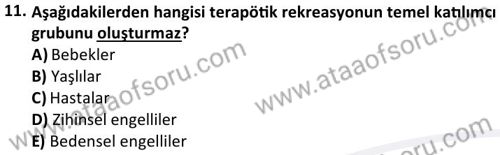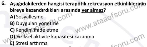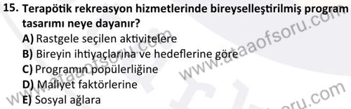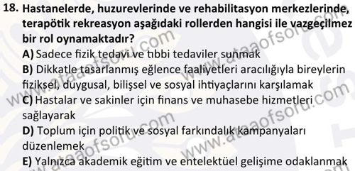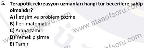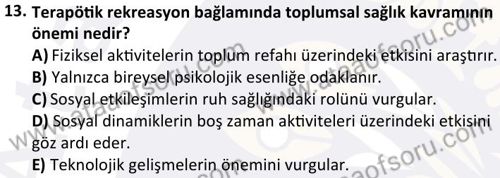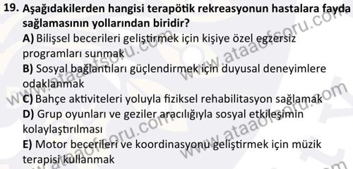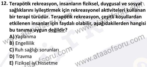 Terapötik Rekreasyon Dersi 2024-2025 Güz Dönemi Ara Sınavı Çıkmış Sınav Soruları ve Çözümleri