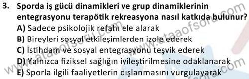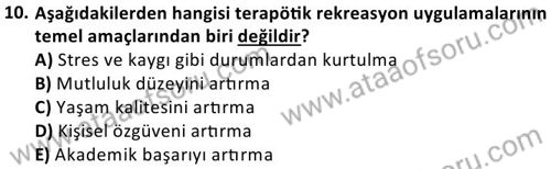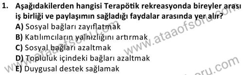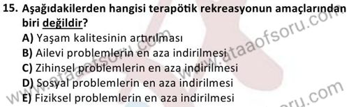 Terapötik Rekreasyon Dersi Ara Deneme Sınavı (17 Kasım)