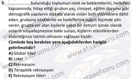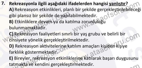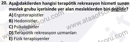Terapötik Rekreasyon Dersi Final Deneme Sınavı (1 Aralık)