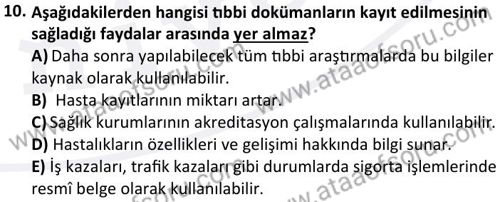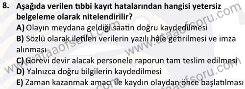 Tıbbi Dökümantasyon Dersi 2025-2026 Güz Dönemi Ara Sınavı Çıkmış Sınav Soruları ve Çözümleri