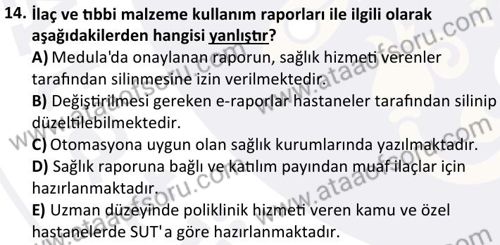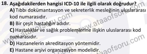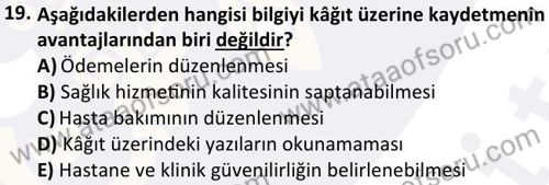 Tıbbi Kayıt ve Hastane Otomasyonu Dersi 2024-2025 Güz Dönemi Bütünleme Sınavı Çıkmış Sınav Soruları ve Çözümleri