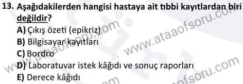 Tıbbi Kayıt ve Hastane Otomasyonu Dersi 2025-2026 Güz Dönemi Ara Sınavı Çıkmış Sınav Soruları ve Çözümleri