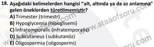 Tıbbi Terminoloji Dersi 2024-2025 Bahar Dönemi Bütünleme Sınavı Çıkmış Sınav Soruları ve Çözümleri