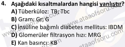 Tıbbi Terminoloji Dersi Final Deneme Sınavı (27 Nisan)