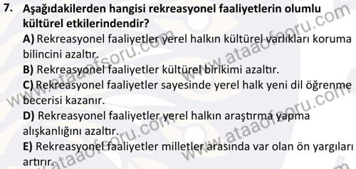 Turizm ve Rekreasyonda Bölgesel Kalkınma Dersi 2024-2025 Güz Dönemi Bütünleme Sınavı Çıkmış Sınav Soruları ve Çözümleri