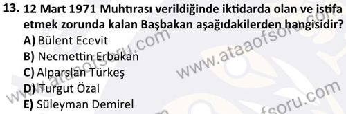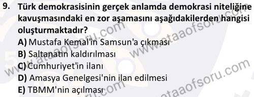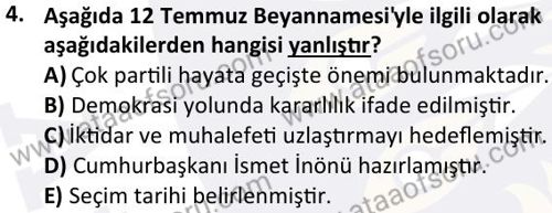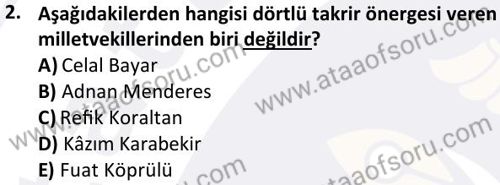 Türk Demokrasi Tarihi Dersi 2023-2024 Mezuniyet Üç Ders Sınavı Çıkmış Sınav Soruları ve Çözümleri