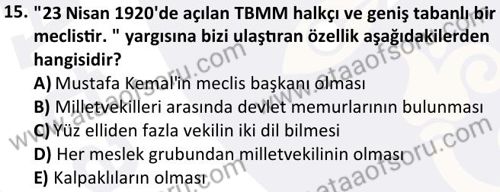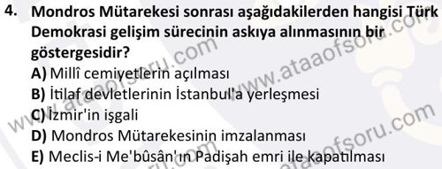 Türk Demokrasi Tarihi Dersi 2024-2025 Bahar Dönemi Ara Sınavı Çıkmış Sınav Soruları ve Çözümleri