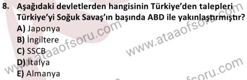 Türk Dış Politikası Dersi 2024-2025 Bahar Dönemi Ara Sınavı Çıkmış Sınav Soruları ve Çözümleri