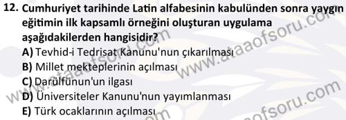 Türk Eğitim Tarihi Dersi 2023-2024 Mezuniyet Üç Ders Sınavı Çıkmış Sınav Soruları ve Çözümleri