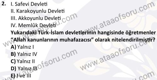 Türk Eğitim Tarihi Dersi Ara Deneme Sınavı (18 Kasım)