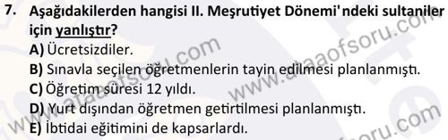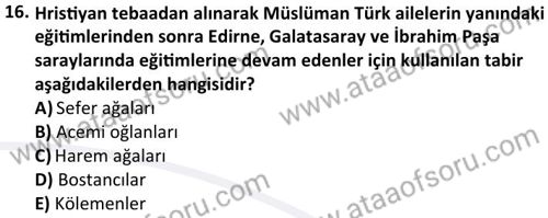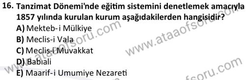 Türk Eğitim Tarihi Dersi Ara Deneme Sınavı (19 Kasım)